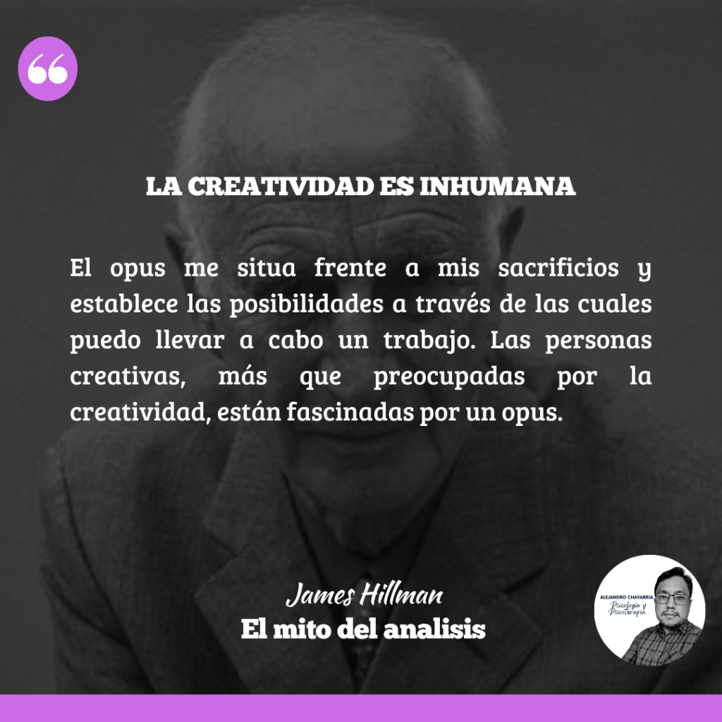 La creatividad es un proceso inhumano que se asienta en la vida del sujeto de forma autónoma, otras culturas hablaban de musas, daimones, shides o del duende, en todas esas figuras se sabía que el impulso creador era una tarea impuesta que debía honrarse y que presagiaba un enorme sacrificio para el sujeto. En la época actual, empero, la creatividad se ha cargado sobre los hombros del individuo y éste, inflamado por la llama creativa, se quema sin remedio hasta extinguirse en el dolor de no poder concebir su poiesis como un invitado al que hay que recibir y atender solo mientras sucede.