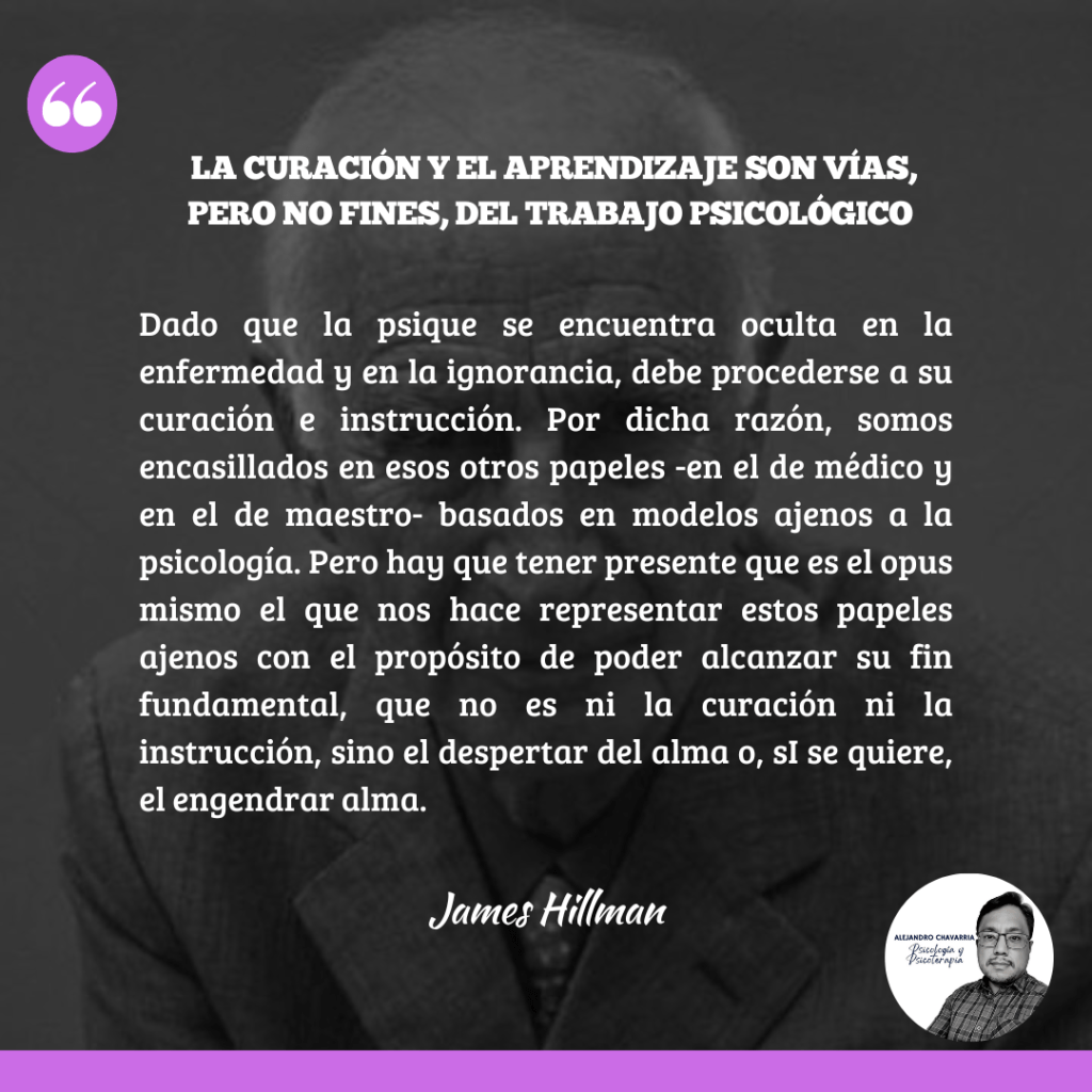 Mientras que la medicina arquetipal caracteriza la actividad del médico como «terapia», en las ramas de las profesiones curativas basadas en las ciencias naturales la actividad principal es el «tratamiento». Mientras que la terapia en su significado original implicaba el «culto», la actividad en torno a una enfermedad, el tratamiento es mucho más una manipulación, una imposición de manos con un comportamiento autoritario. El tratamiento connota una relación vertical entre el médico y el paciente mediante la cual se puede lograr la recuperación.